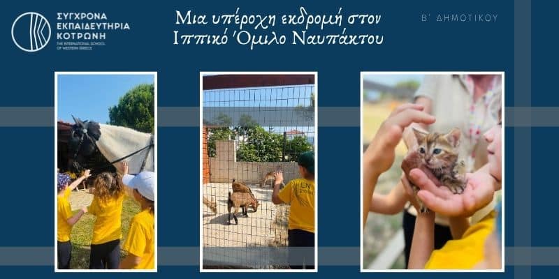 Μια μοναδική εμπειρία αποκόμισαν οι μαθητές και οι μαθήτριες της Β’ τάξης του Δημοτικού μας με την επίσκεψή τους στον Ιππικό Όμιλο Ναυπάκτου! Κατά τη διάρκεια της επίσκεψης αυτής απόλαυσαν το πρωινό τους στην εξοχή, έκαναν βόλτα με την άμαξα και γνώρισαν τα ζώα τα οποία φιλοξενούνται εκεί, άλογα, ελάφια και κατσίκια! Επιπροσθέτως, είχαν την […]