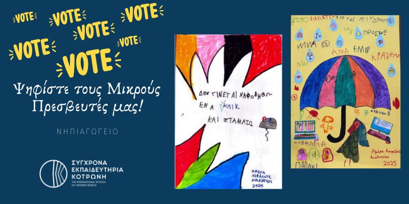 Το σχολείο μας, Σύγχρονα Εκπαιδευτήρια Κοτρώνη, με την ομάδα του Νηπιαγωγείου και του Προ νηπίου, συμμετέχει στο Bravo Schools 2025, στον 8ο Πανελλήνιο Σχολικό Διαγωνισμό για τους 17 Παγκόσμιους Στόχους, στον οποίο καταγράφονται οι προτάσεις των μαθητών/τριων για την δημιουργία ενός καλύτερου κόσμου. Ψηφίστε τώρα τις δράσεις των μικρών πρεσβευτών και επιβραβεύστε τους, ώστε να […]